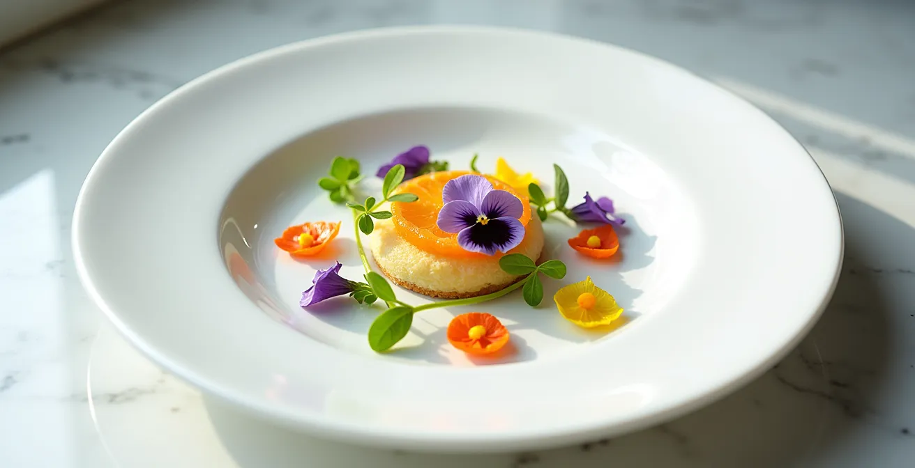 Et si la véritable clé n’était pas de « décorer », mais de concevoir la touche finale comme un ingrédient essentiel ? Si, au lieu d’ajouter un élément purement visuel, vous pouviez intégrer une nouvelle dimension de saveur, une texture surprenante ou une note poétique ? C’est le secret des grands chefs. Pour eux, la décoration est une alchimie culinaire. Chaque pétale, chaque tuile croustillante, chaque grain de poudre n’est pas un artifice, mais une partie intégrante du récit que l’assiette raconte. C’est l’idée d’un « ingrédient-décor » : un élément qui est aussi bon que beau.