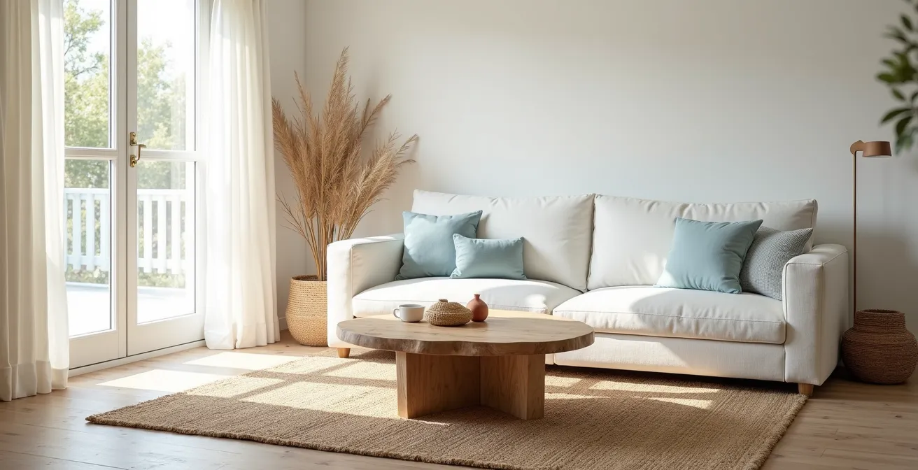 - Créer le camaïeu : Intégrez deux à trois nuances de blanc cassé et de beige sur les grands textiles (canapé, rideaux) et les meubles principaux pour créer une profondeur subtile.